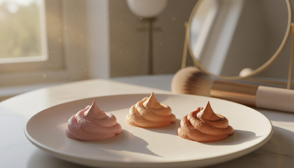 You’ll find Kay Beauty’s Velvet Creme Blush delivers exceptional pigmentation in a mousse-like texture that blends seamlessly into your skin. The formula offers buildable coverage, allowing you to create everything from a subtle natural flush to more dramatic color payoff. Popular shades like Sweetheart Pink, Cosy Coral, and Rustic Rush provide versatile options that suit medium to fair skin tones perfectly.