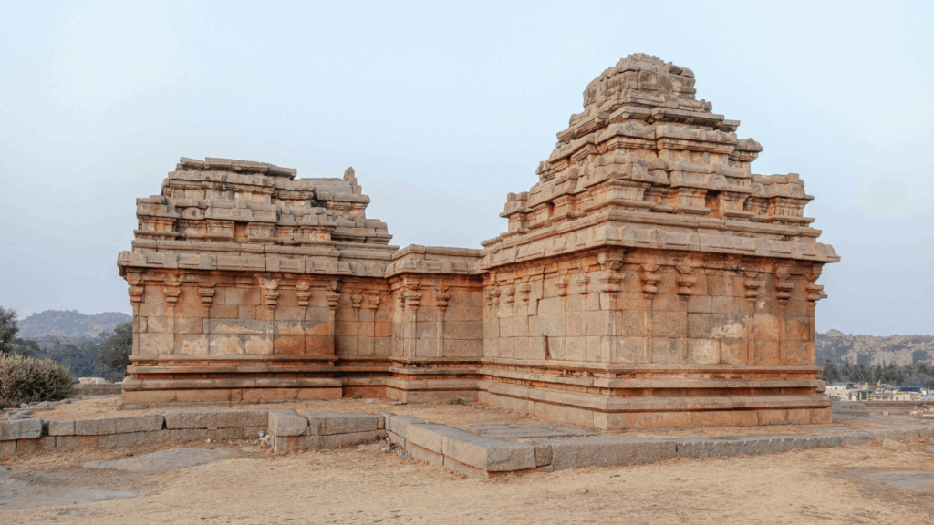 Active since 7th century, expanded 1442 by Deva Raya II, Virupaksha’s 160-ft gopuram towers over bazaar, carved with Shiva-Parvati myths, musicians. Enter via musical pillars (tap for sa-re-ga notes), reach sanctum’s 10-ft linga bathed daily. Rear wall’s pinhole mirrors gopuram inverted—optical wonder delighting kids. Mahanavami Platform nearby hosted Dasara: elephant processions, dances atop 12-tiered base with friezes of yali (lion-mythic beasts).